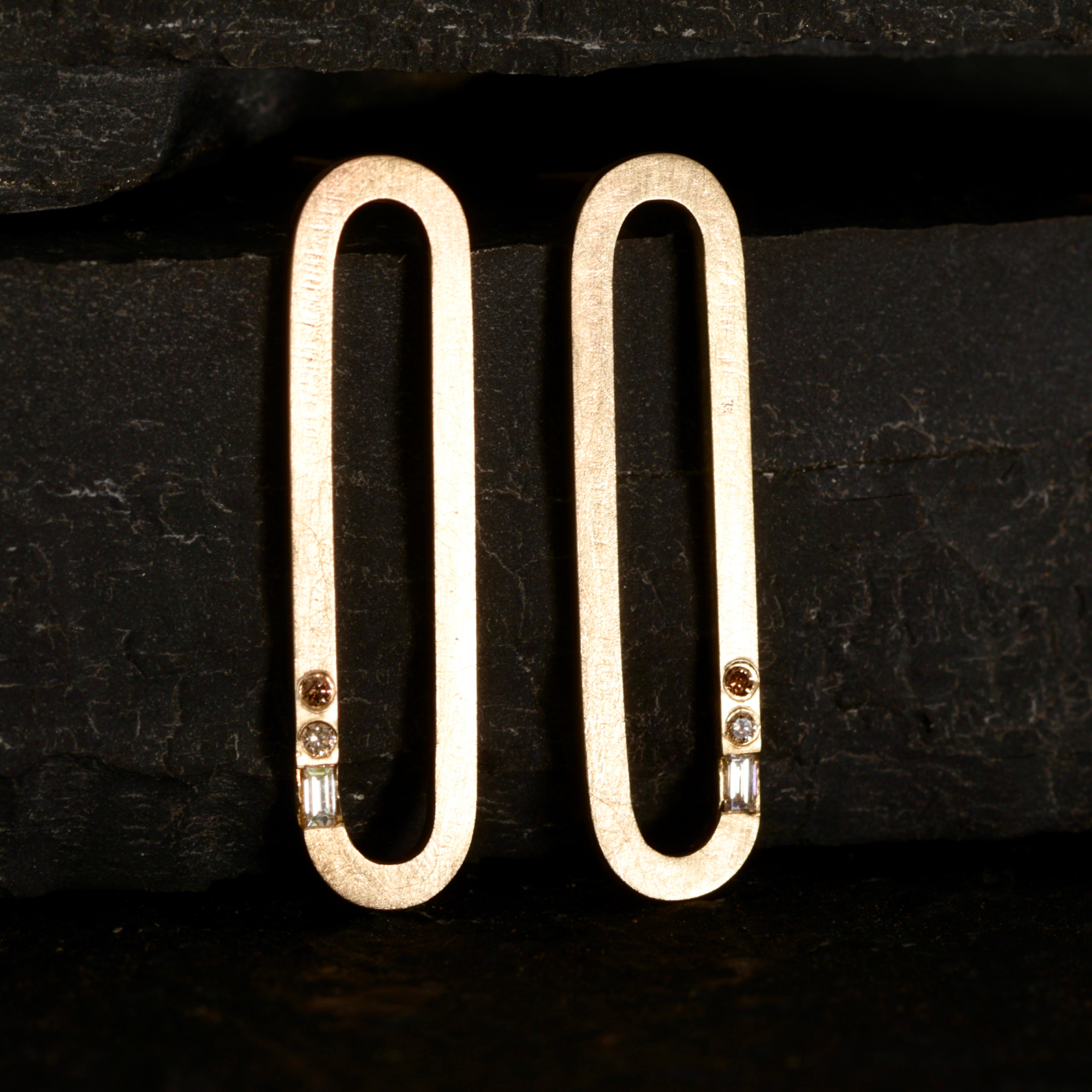 9ct yellow gold long oval studs – structured, crisp geometric forms from my long-running Gotham collection.