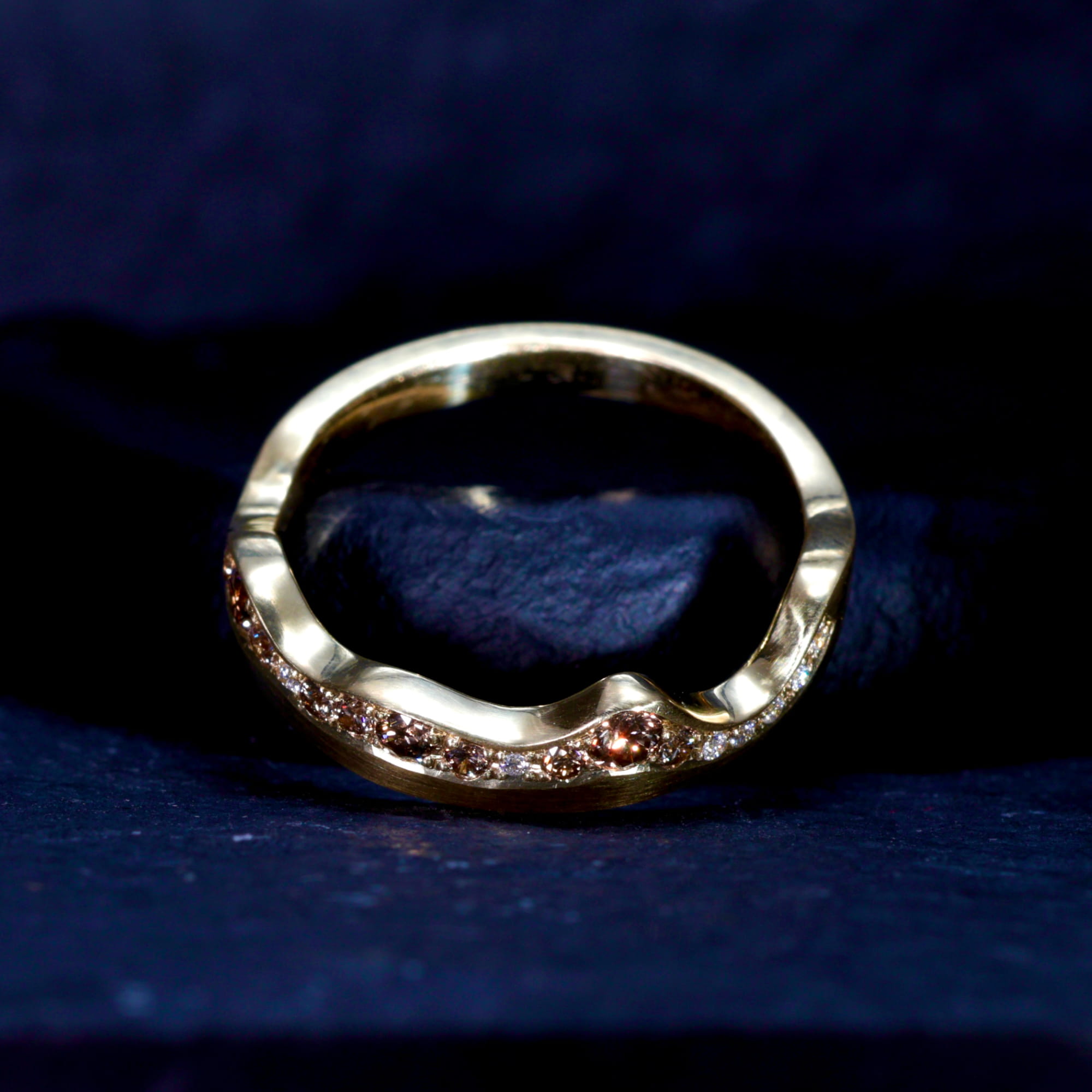 18ct yellow gold grain set with 21 diamonds ranging in colour from cognac, champagne and white.