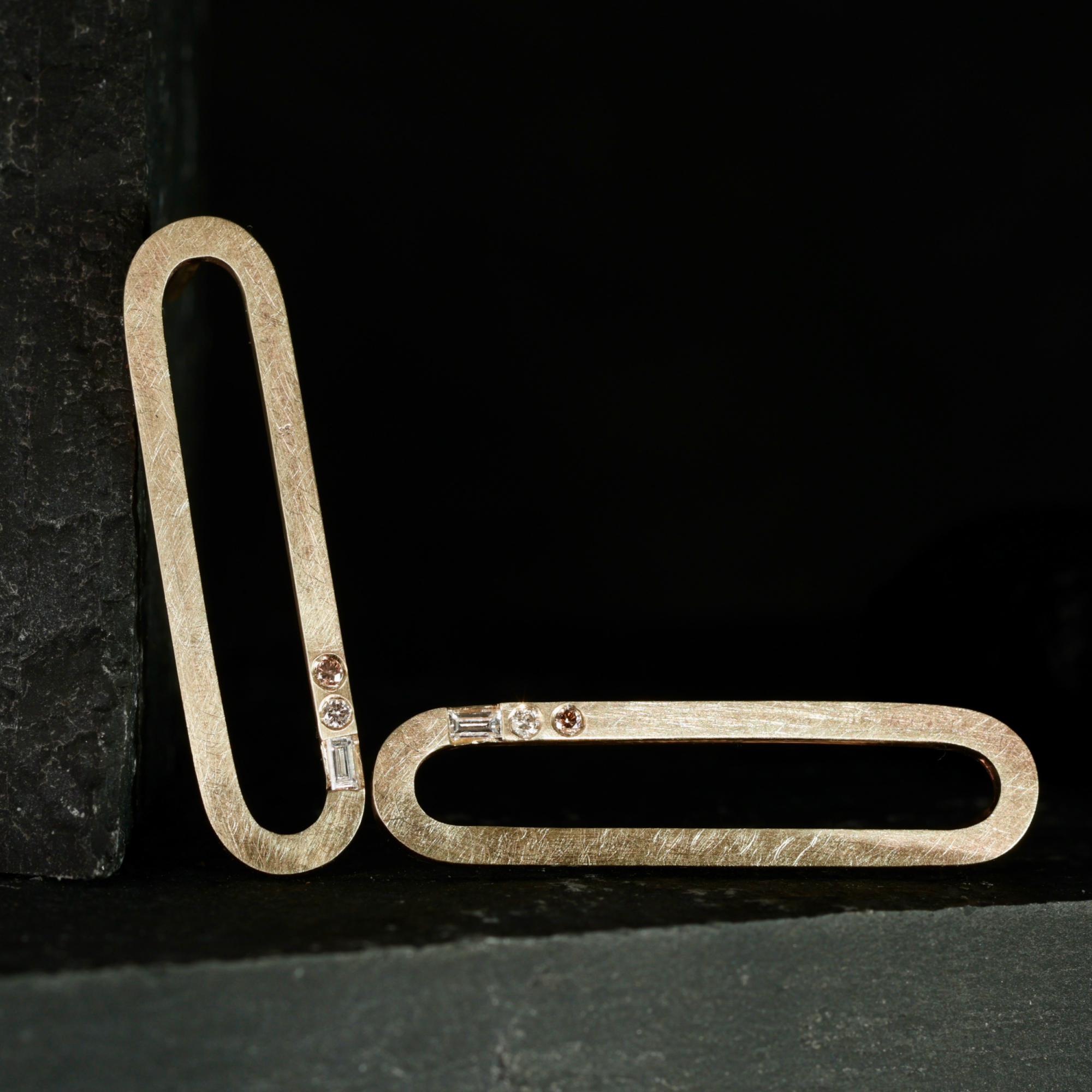 9ct yellow gold long oval studs – structured, crisp geometric forms from my long-running Gotham collection.