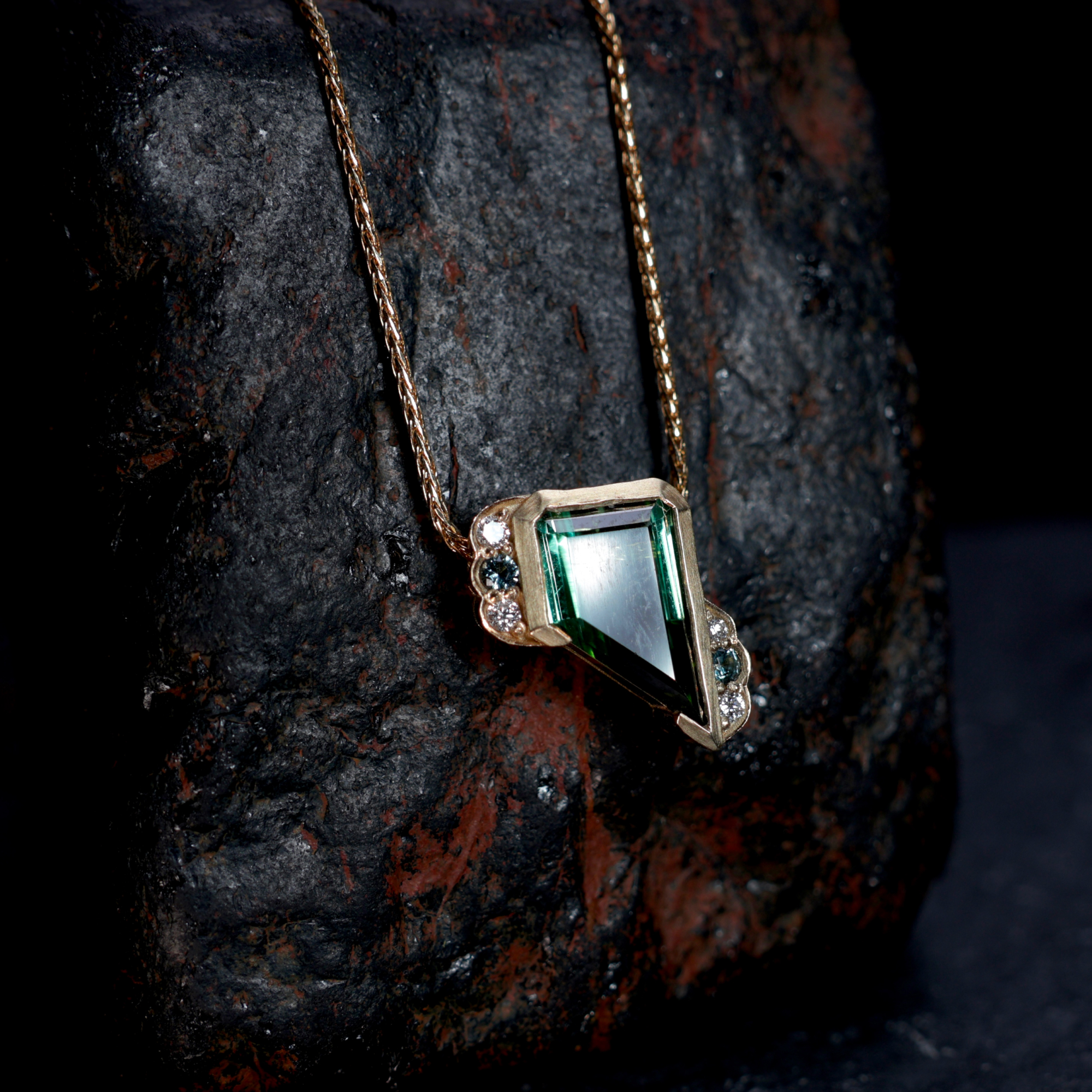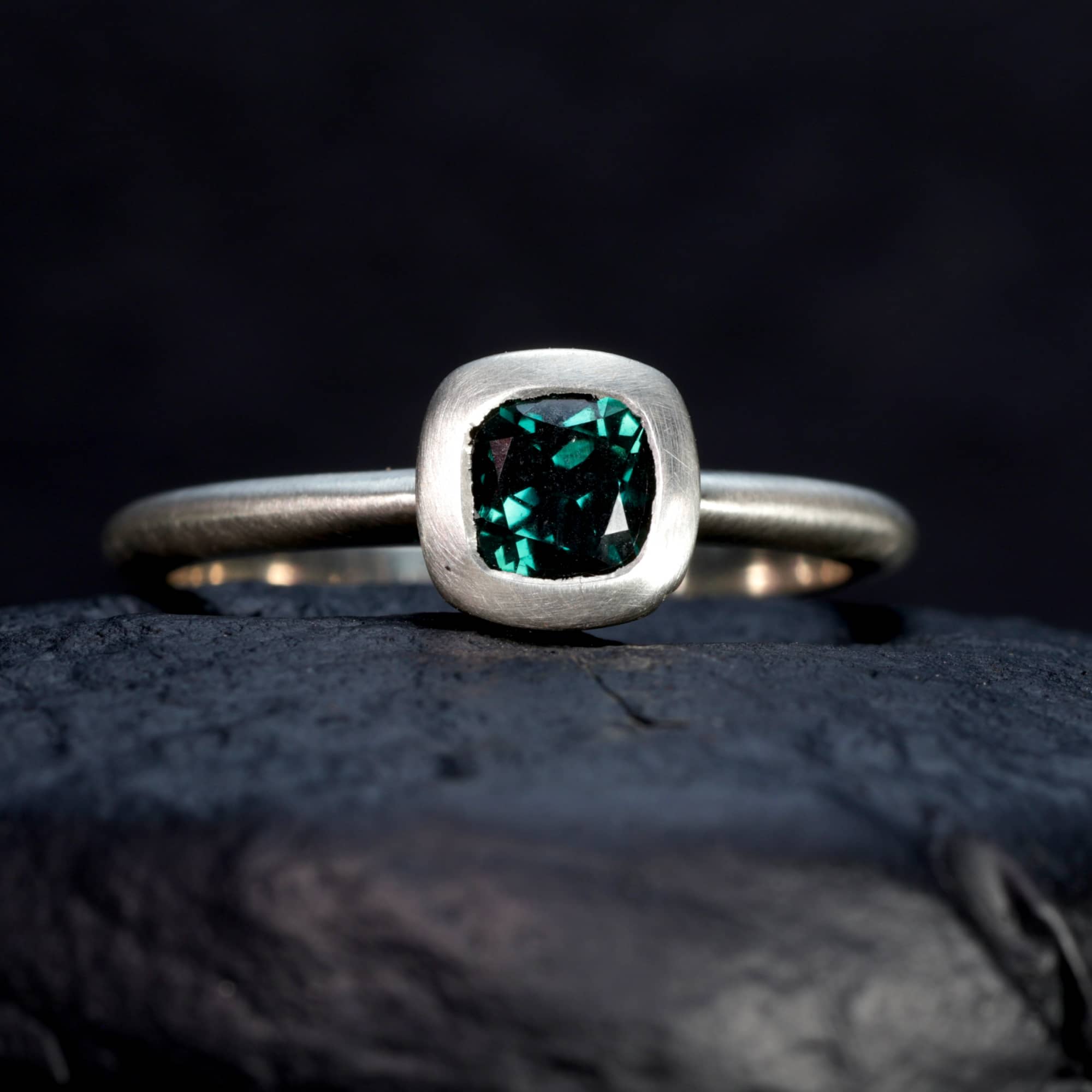 The Laguna Verde ring #1 recalls the cool vivid lake that glows green in the Altiplano in Bolivia.